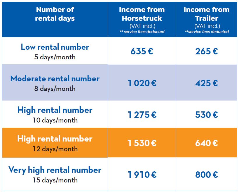 Rent out your horsetruck or trailer worry-free with Renteo. You'll receive email or SMS notifications for all upcoming bookings. When a customer reserves your horsetruck online, they make a secure advance payment directly on the website. The initial and final vehicle inspections are easily conducted through our provided app. Simply take photos, fill in the necessary details, and you'll receive your signed contract within minutes. This contract ensures the security of all your rentals.